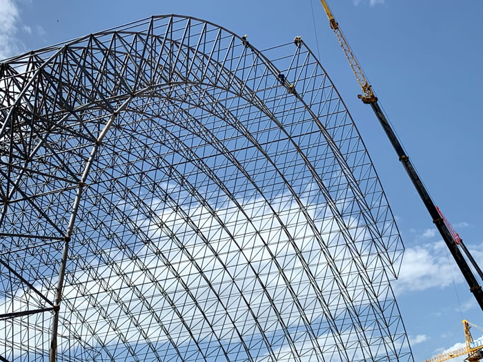 (2)网架加工前应对现场尺寸进行复测,确认无误后方可进行加工、安装;网架制作、运输、安装应遵守《空间网格结构技术规程》JGJ7-2010、《钢网架汨罗螺栓球节点》JG/T 10-2009、《钢网架汨罗螺栓球节点用高强度螺栓》 GB/T 16939-2016、《汨罗钢结构汨罗工程汨罗施工规范》 GB50755-2012、《汨罗钢结构汨罗工程施工质量验收标准》 GB50205-2020。
